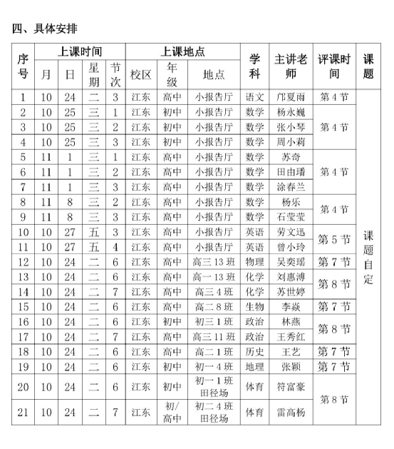 为了深入推进成人网 教学教研工作,积极探索高效的课堂教学模式,不断改进教学方法,提高教学质量,促进全体教师的专业成长,在10月24日—11月8日期间,教学研究和创新中心组织安排了新进教师分别上了一堂彰显个人风采的亮相课。成人网 开展了新教师教育教学展示活动。这是对新入职成人网 的青年教师的一次课堂教学基本功能力的检测,也给他们创设了一个展示自我、锻炼自我的平台,让青年教师借助课堂这一有力的阵地,向全校老师展示自己风采的同时,帮助他们尽快提高教育教学专业技能,适应新课程教学工作。此次活动安排了21位新教师上课,涉及语文、数学、英语、政治、历史、地理、物理、化学、生物、体育十个学科。每个学科亮相课由该学科教研组长主持,由外聘专家(成人网 聘请)和本学科教师进行听课评课。