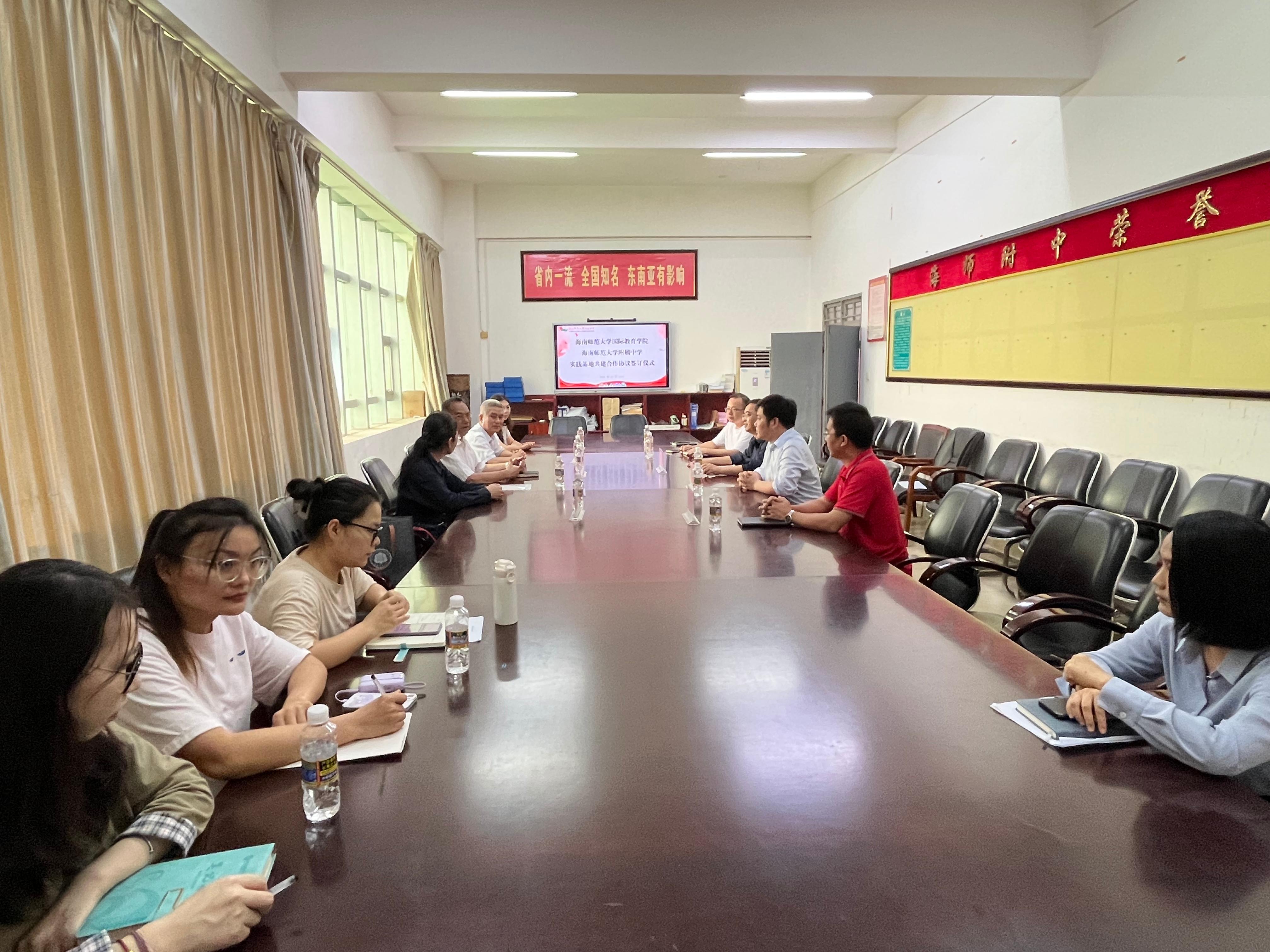成人网 分管教学的副校长邹春平亲率教务科、教学研究与创新中心等部门中层领导负责接待了海师大领导和老师的来访。海师附中校长覃程出席了随后的交流活动及签字仪式。